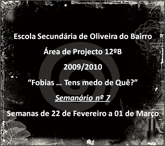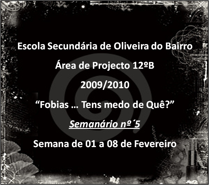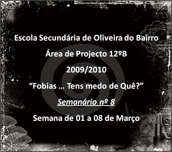 Ao longo desta semana, trabalhamos no desenvolvimento do nosso projecto. Continuamos a desenvolver o nosso Web Site, nomeadamente o tópico “Definição de Fobia”, que apresentamos no nosso índice de temas (botão “Projecto”)